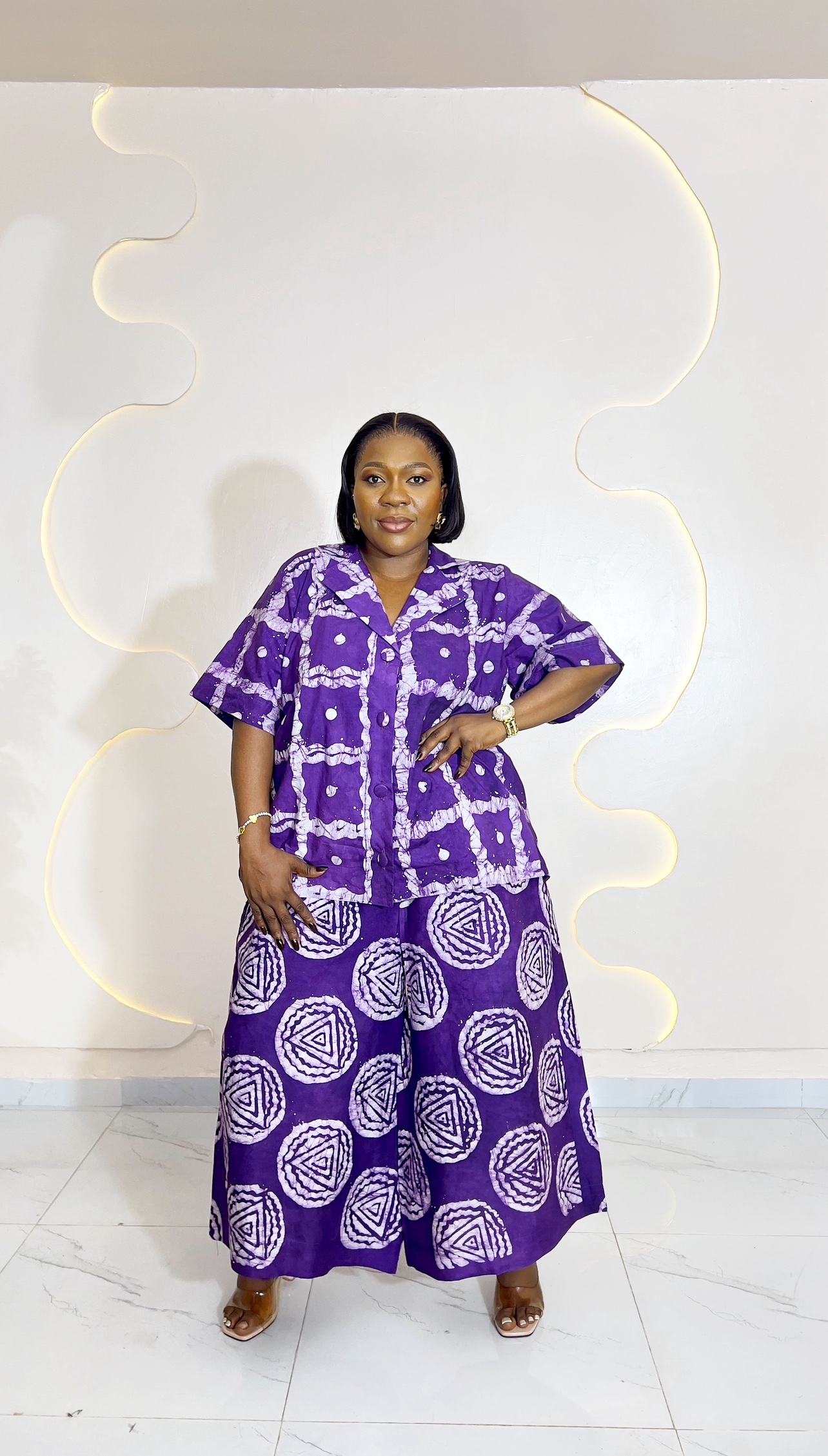 Style: Collar shirt top + 3/4 clout pants