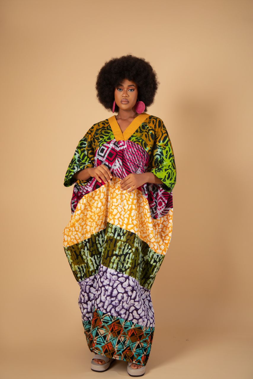 Made from Adire pure cotton, this kaftan is a thoughtful blend of fabrics from our past bestselling pieces. It features an overlap front and a back V-neck band crafted from double-woven Asooke, adding structure and depth. Designed with two inner pockets for functionality, it is a perfect mix of comfort, heritage, and modern design. Ideal for relaxed outings, cultural events, or effortless everyday wear.